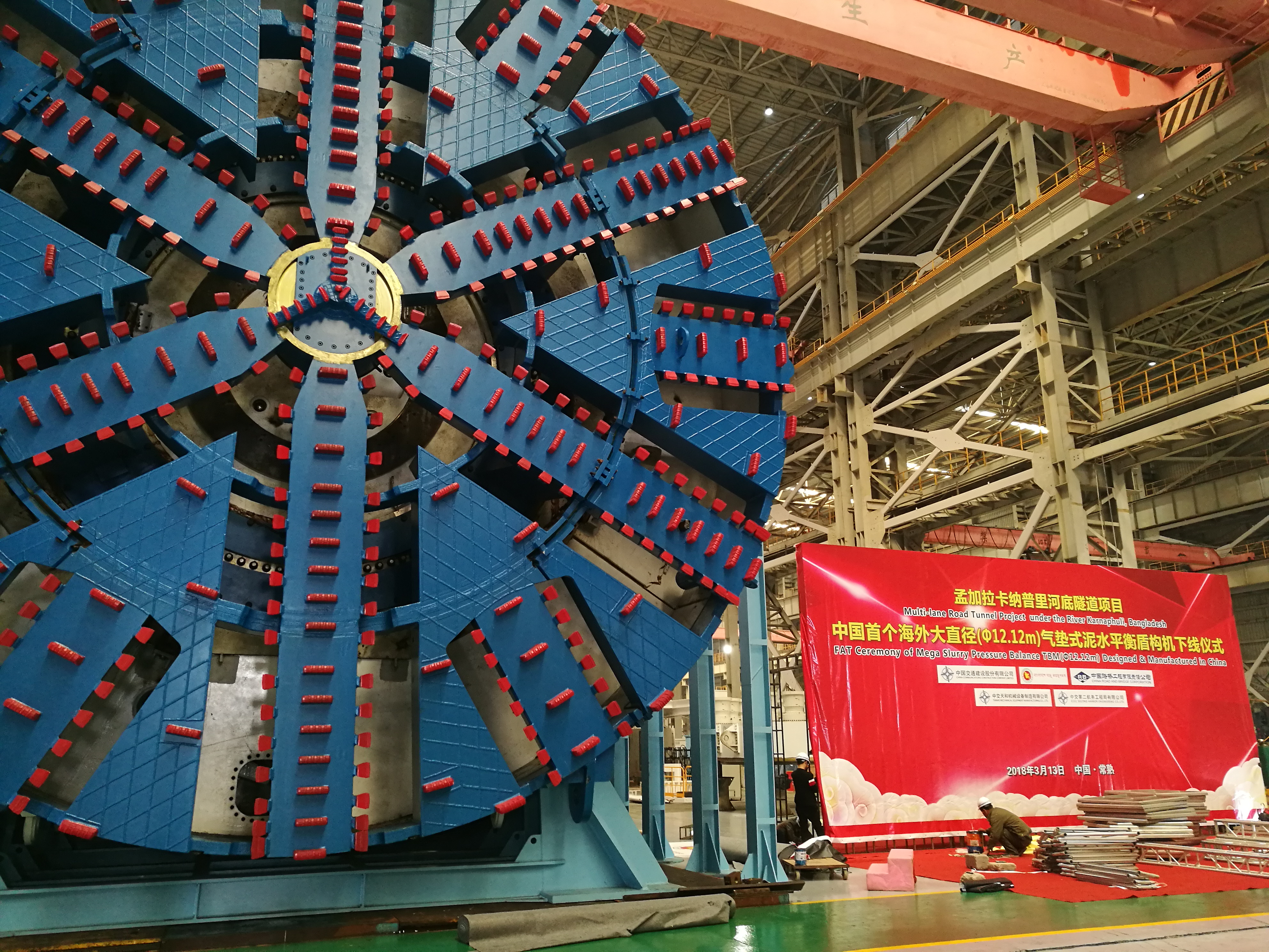 3月13日,由中交天和自主研制的中國(guó)出口海外大直徑盾構(gòu)機(jī)在江蘇常熟成功下線(xiàn),盾構(gòu)機(jī)刀盤(pán)直徑達(dá)12.12米、長(zhǎng)94米、重2200余噸,是南亞地區(qū)大直徑的盾構(gòu)機(jī)。該盾構(gòu)機(jī)將用于中國(guó)在海外大的盾構(gòu)公路隧道項(xiàng)目--孟加拉卡納普里河底隧道工程,打破了由發(fā)達(dá)國(guó)家對(duì)海外超大直徑盾構(gòu)市場(chǎng)的壟斷,標(biāo)志著中國(guó)盾構(gòu)機(jī)設(shè)計(jì)研發(fā)能力達(dá)到了領(lǐng)先水平。