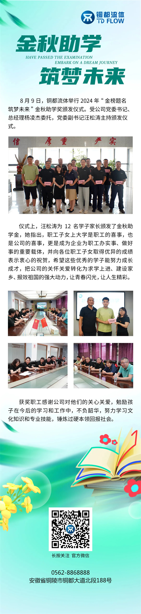金榜題名 筑夢未來 | 銅都流體舉行2024年金秋助學(xué)獎頒發(fā)儀式
