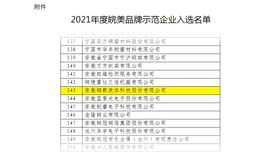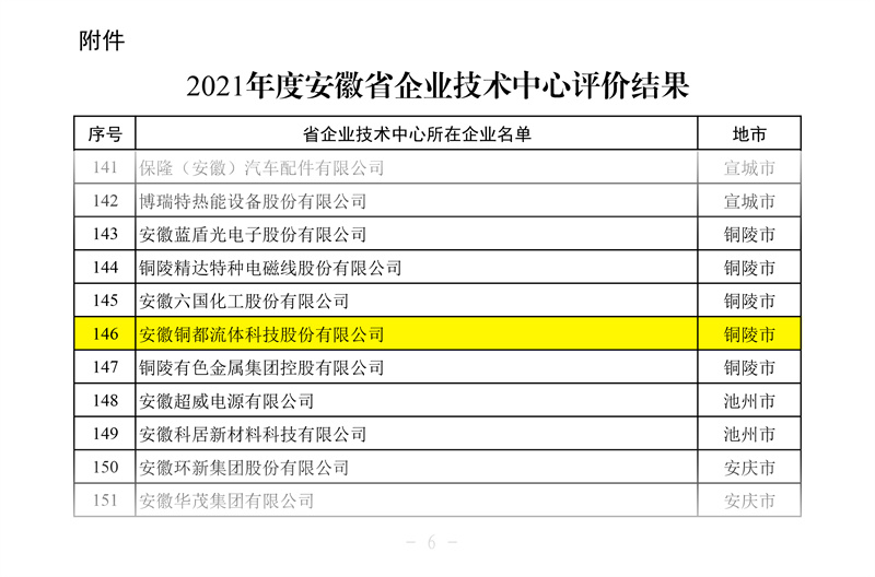 同時(shí),2021年度安徽省企業(yè)技術(shù)中心評(píng)價(jià)結(jié)果公示,銅都流體省企業(yè)技術(shù)中心再獲優(yōu)秀。